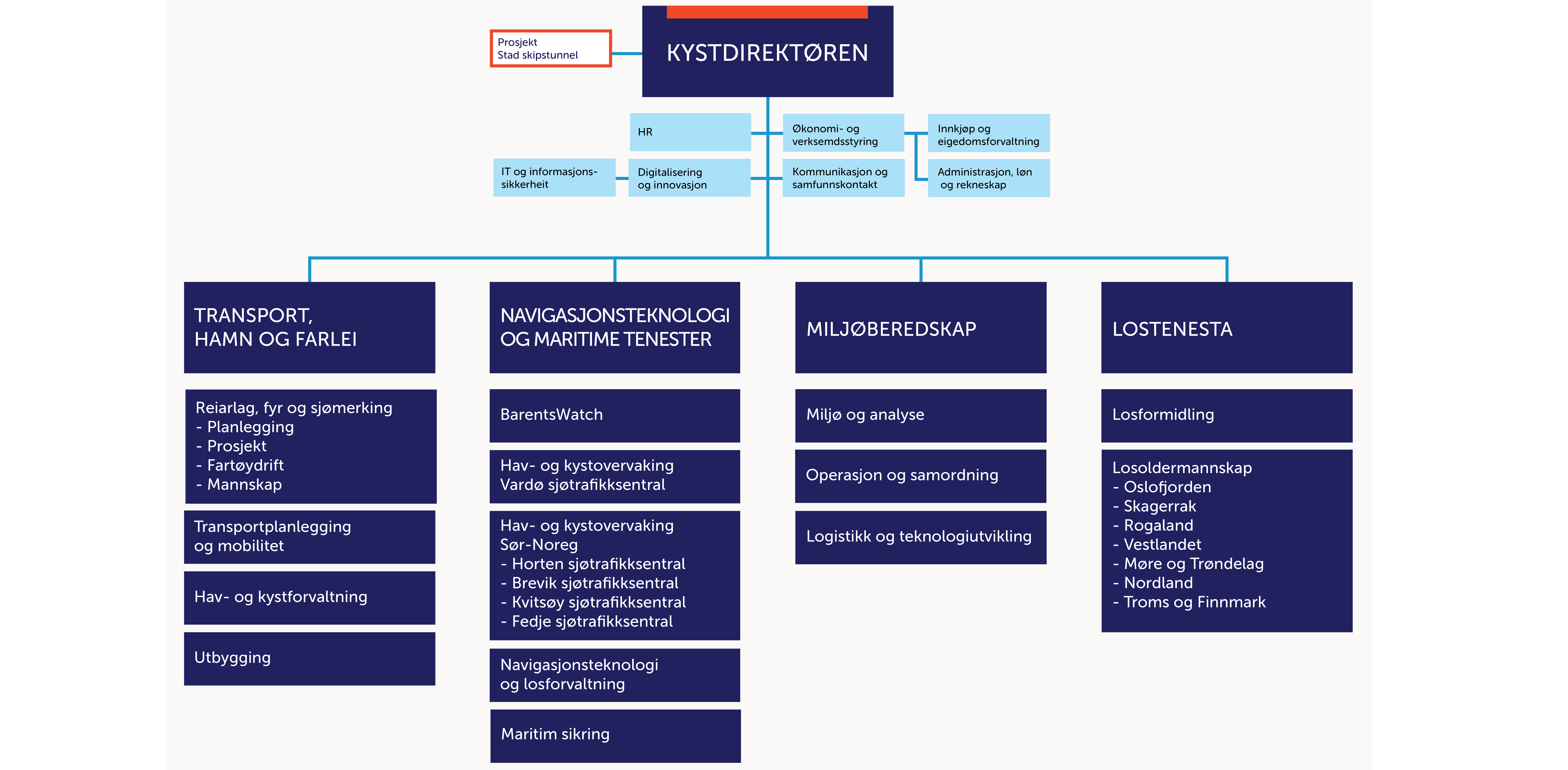 The NCA has about 1000 employees in total, over half of which are involved in operational activities. The NCA is a decentralised organisation. We have a presence along the entire coast of Norway and offices from Arendal in the south to Honningsvåg in the north. The NCA’s management team is based in Ålesund.