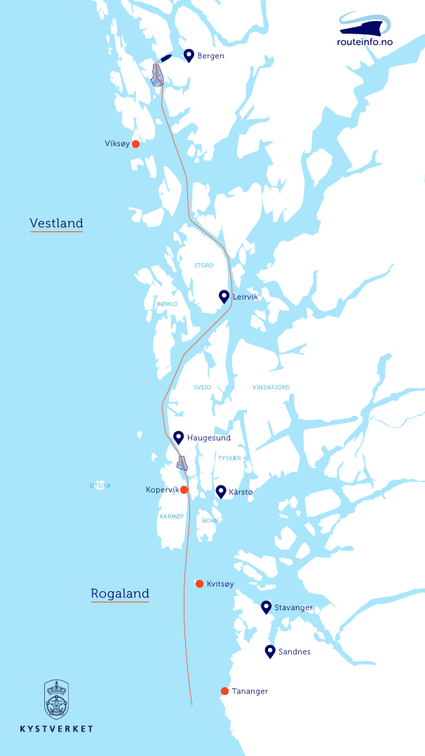 The Norwegian Coastal Administration has gathered different information about the voyage in one digital service. This is information that is currently scattered in various maps and publications. Routeinfo.no ​​provides access to: