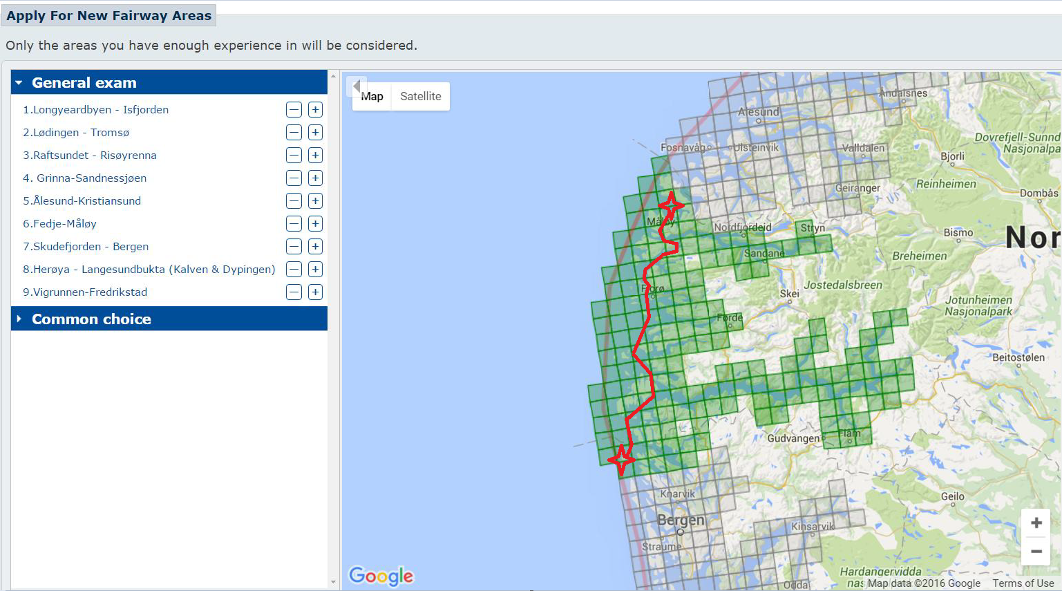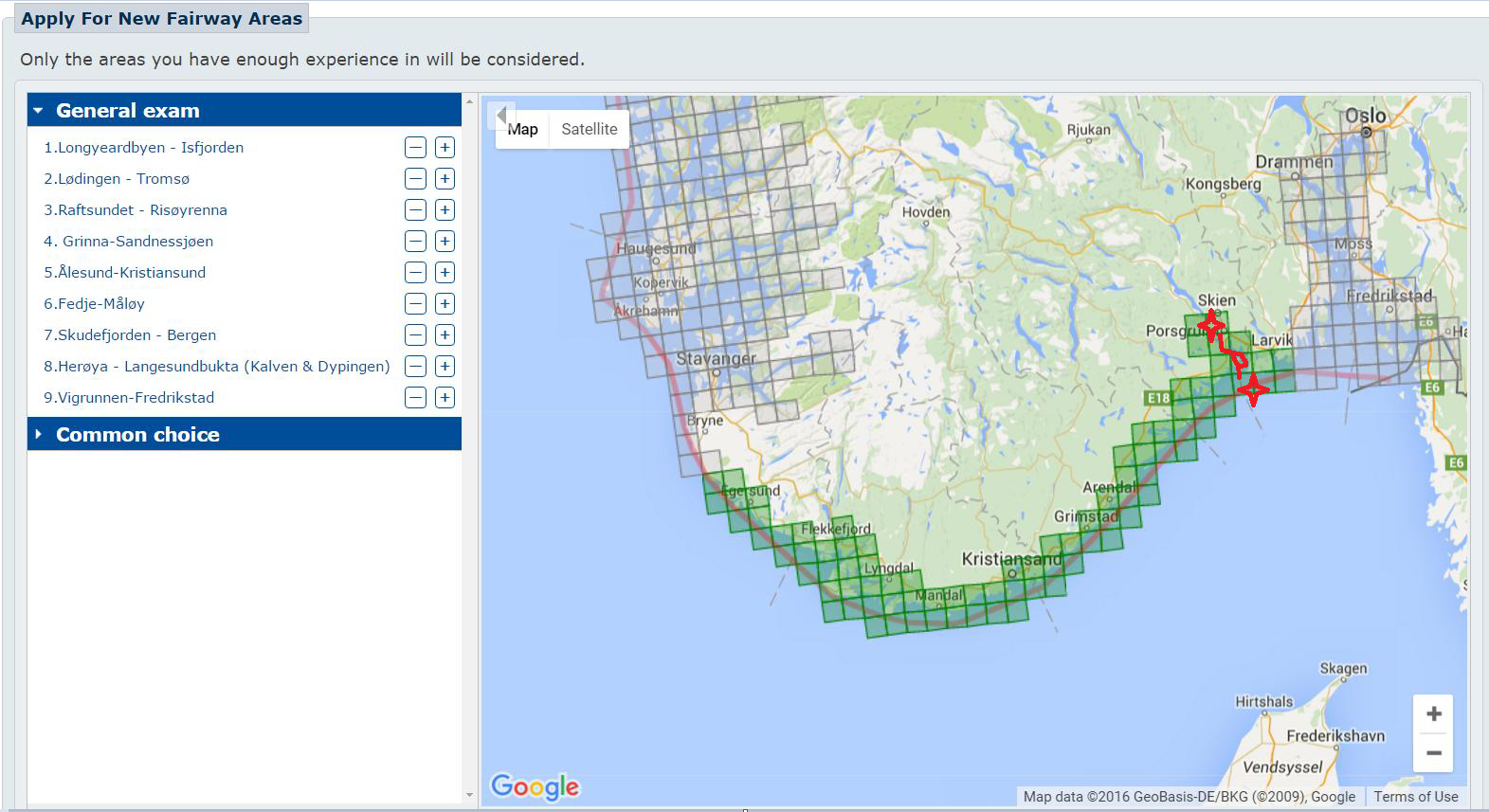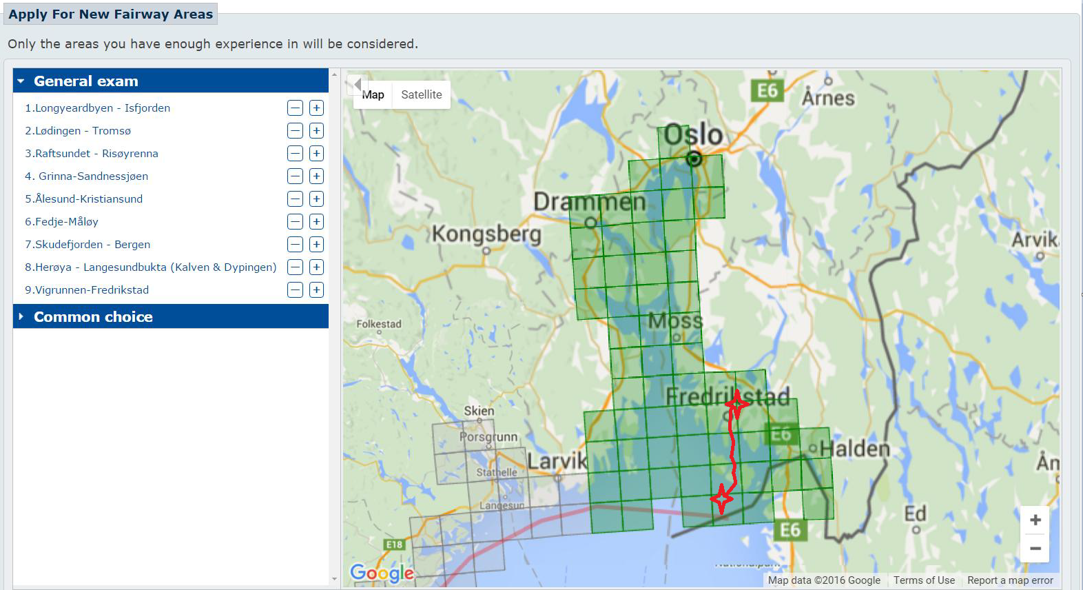 Det er en forutsetning at erfaringskrav i losplikforskriften er oppfylt for å få hele de definerte områdene. Dersom navigatøren ikke har erfaring fra hele området vil det bli gitt godkjenning for en avgrenset del av området, selv om det er avlagt en representativ prøve. Navigatøren vil imidlertid få sitt farledsbevis utvidet til nye leder i samme område utelukkende basert på at erfaringskravet senere blir innfridd. Dette gjelder ikke for klasse 1 hvor det må avlegges prøve for hver nye farled.