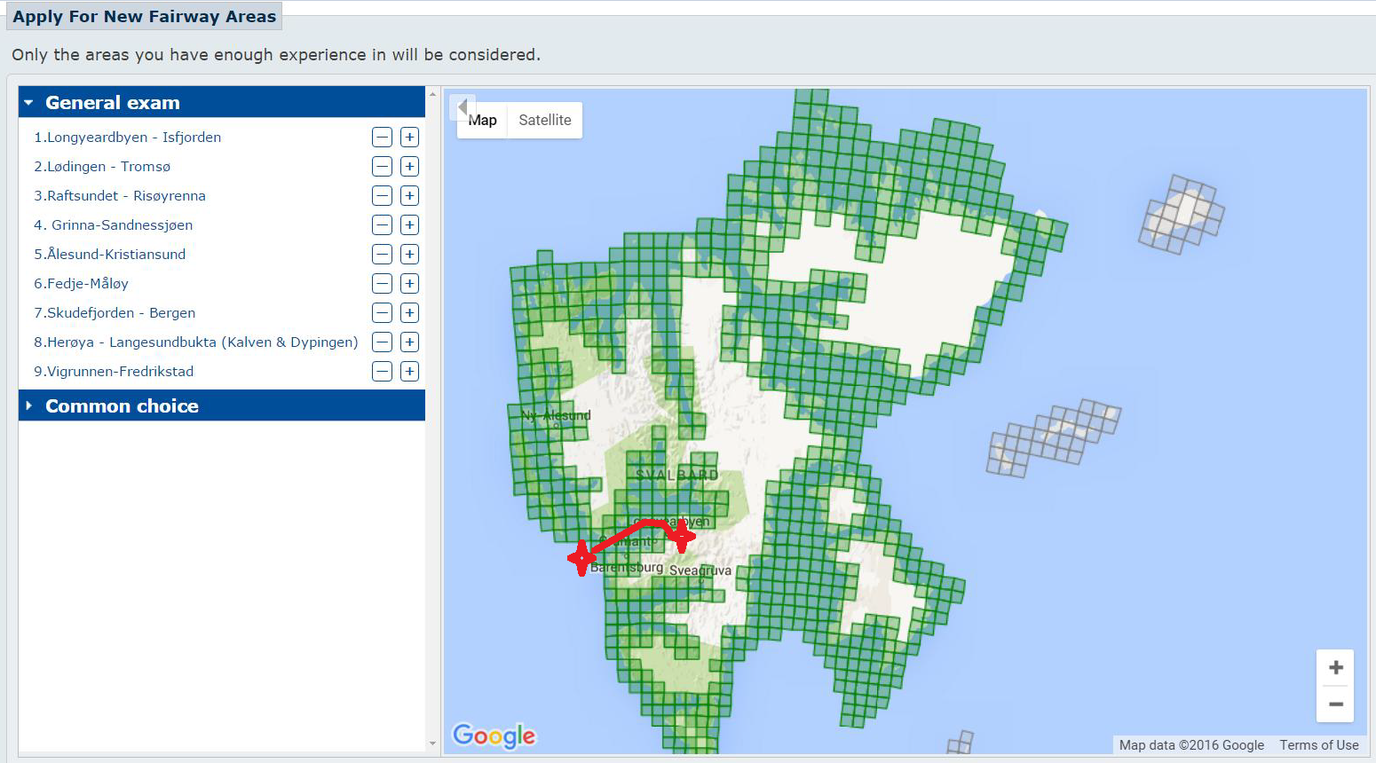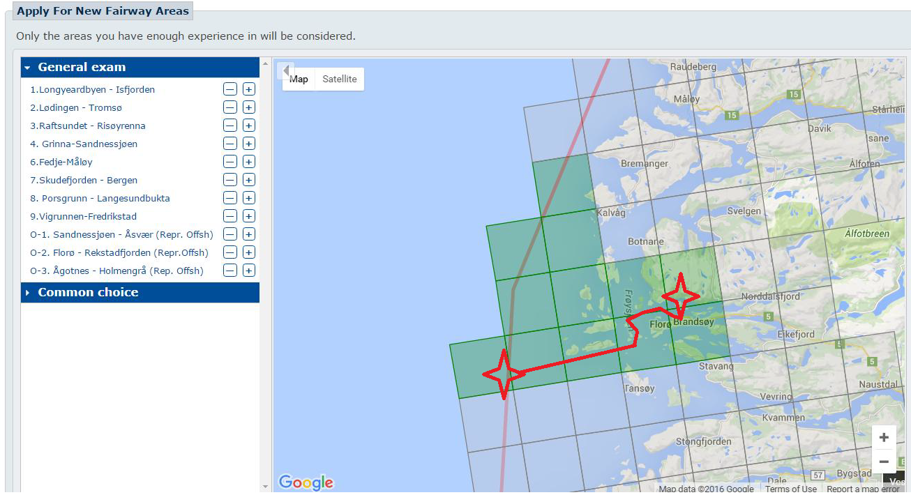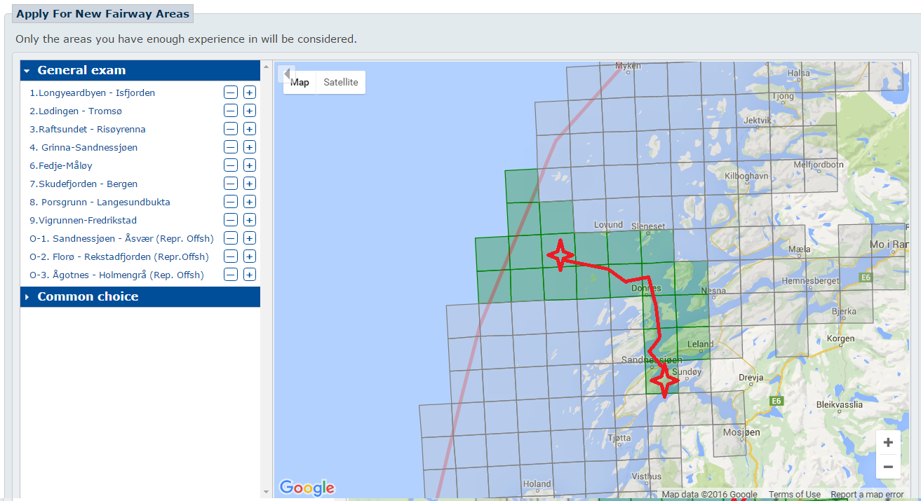 Det er en forutsetning at erfaringskrav i losplikforskriften er oppfylt for å få hele de definerte områdene. Dersom navigatøren ikke har erfaring fra hele området vil det bli gitt godkjenning for en avgrenset del av området, selv om det er avlagt en representativ prøve. Navigatøren vil imidlertid få sitt farledsbevis utvidet til nye leder i samme område utelukkende basert på at erfaringskravet senere blir innfridd. Dette gjelder ikke for klasse 1 hvor det må avlegges prøve for hver nye farled.
