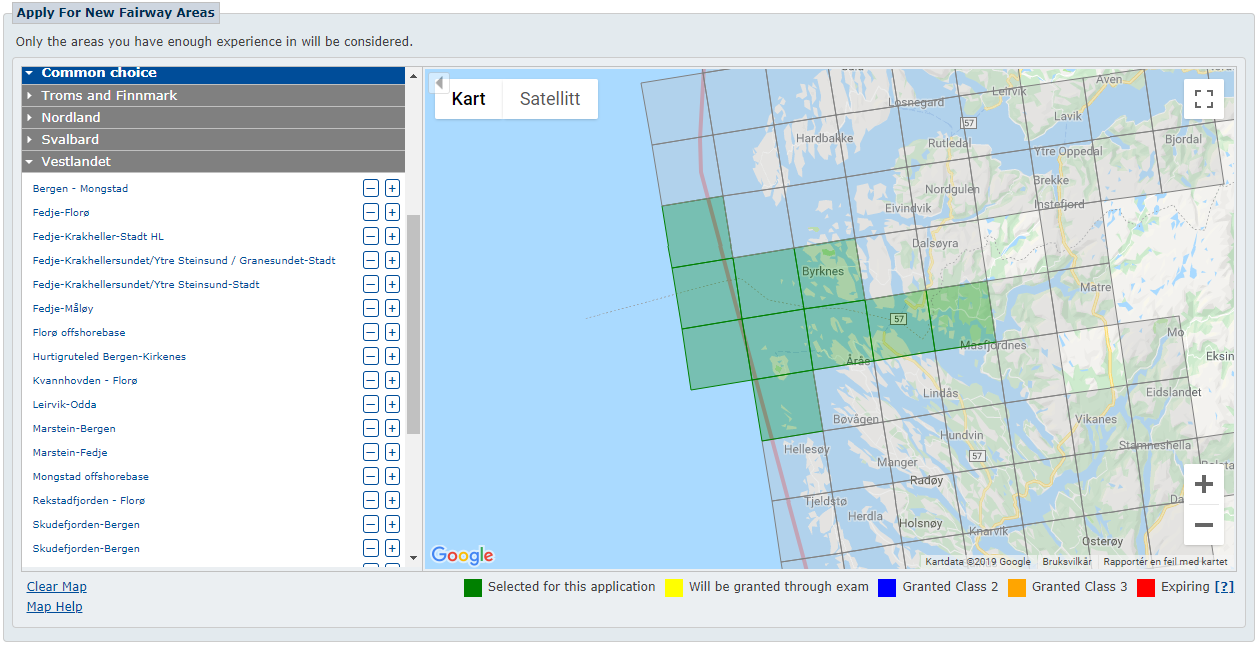 Representative offshore prøver: Det er fastsatt tre leder til offshorebaser som er representative prøver for de øvrige offshorebasenes innseilinger. Les mer lenger nede.