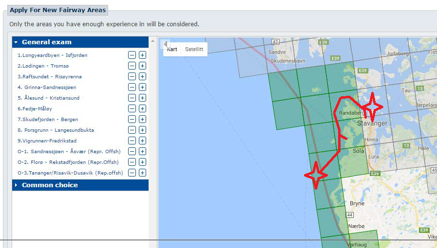 Prøver utenom representative prøver: I utgangspunktet kan det utføres prøver andre steder utenom representative leder, men disse vil da ikke regnes som representative. En erfaringsvurdering av navigatøren som søker vil avgjøre hvor mye som kan innvilges etter en slik prøve. Om du som navigatør har planer om å utvide ditt farledsbevis over større områder bør du satse på de representative prøvene.