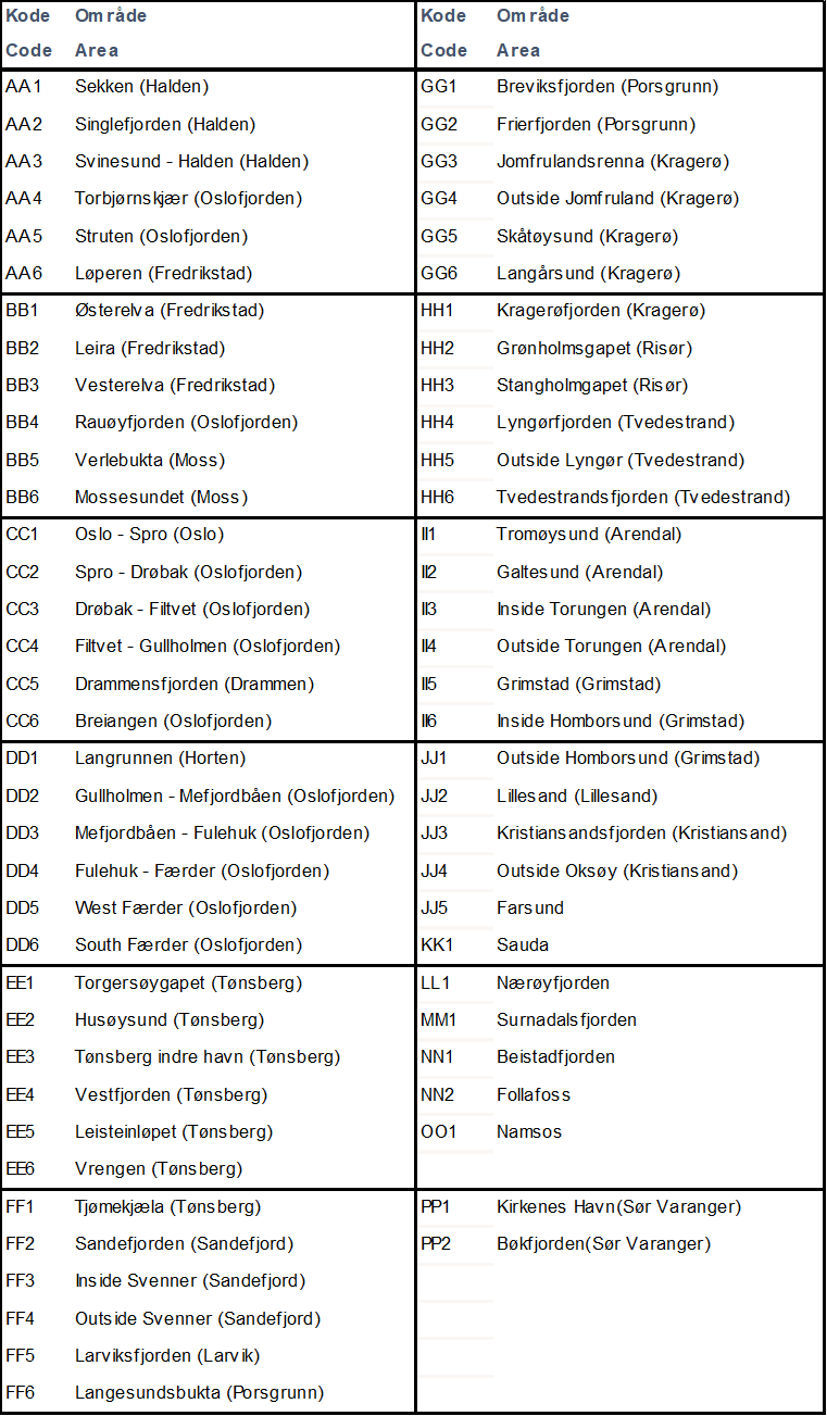 Områdekode - Hvilket område gjelder ismeldingen for. |