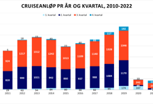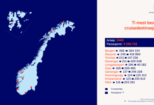 Med rundt 430 000 anløpende passasjerer hadde Stavanger flest cruisepassasjerer i 2022. Det er en økning på over 150 000 passasjerer siden 2016. Ålesund hadde nærmere 417 000 cruisepassasjerer i 2022, sammenlignet med om lag 180 000 i 2016.