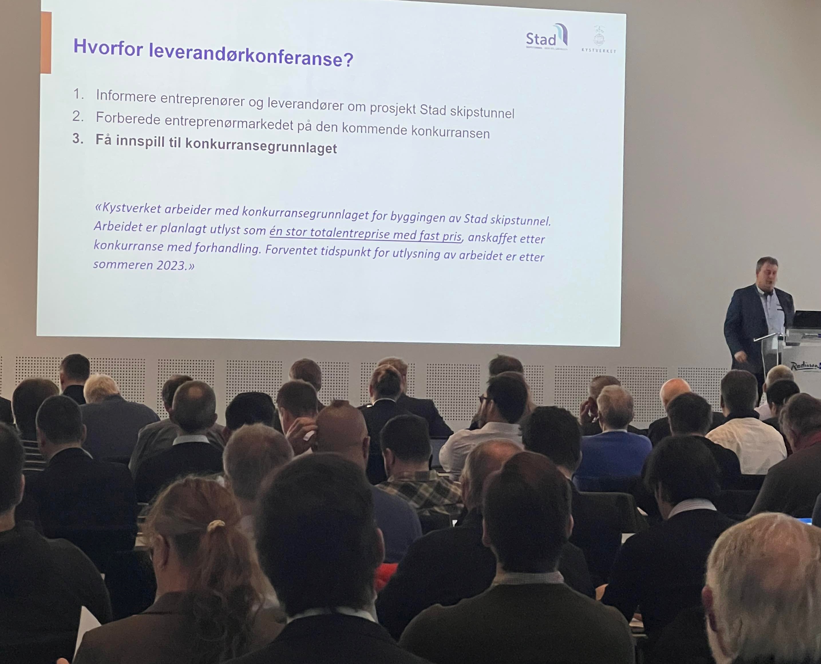 – Målsettingen med konferansen var tredelt. For det første ønsket vi å presentere prosjektet gjennom tekst, bilder og film, og få opp kunnskapen om skipstunnelen og det omfattende og spektakulære arbeidet som skal skje ute på Stadlandet. Dernest ønsket vi å presentere detaljer vedrørende kontrakt, anbudsgjennomføring og tekniske utfordringer med mer, for å forberede entreprenørmarkedet på den kommende konkurransen. Sist, men ikke minst så gjør vi dette for å få tilbakemeldinger og innspill til konkurransedokumentene våre, sier Terje Skjeppestad.