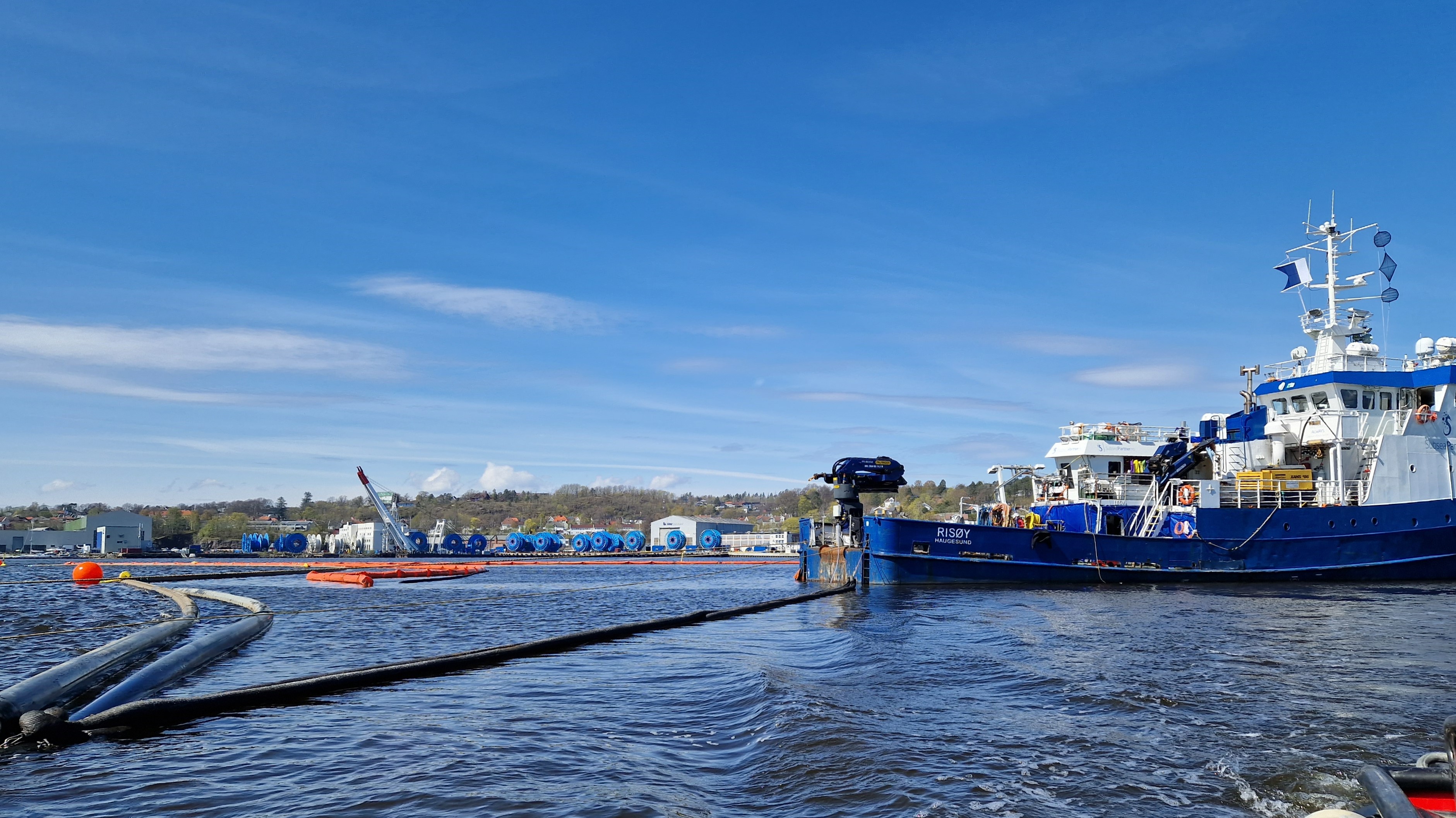 Båten er borte fra Mossesundet, men noe oljevernutstyr blir liggende litt til. Foto: Marte S. Grøndahl