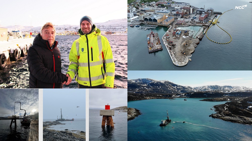Prosjektleder for NCC (hovedentreprenør), Tore Årberg, prosjektleder for Kystverket (byggherre). Den nye sentrumskaia med avfallsdeponi innebygget, bilde fra arbeidet i innseilingen til Forsøl fiskerihavn og fra arbeidet med nye sjømerker.