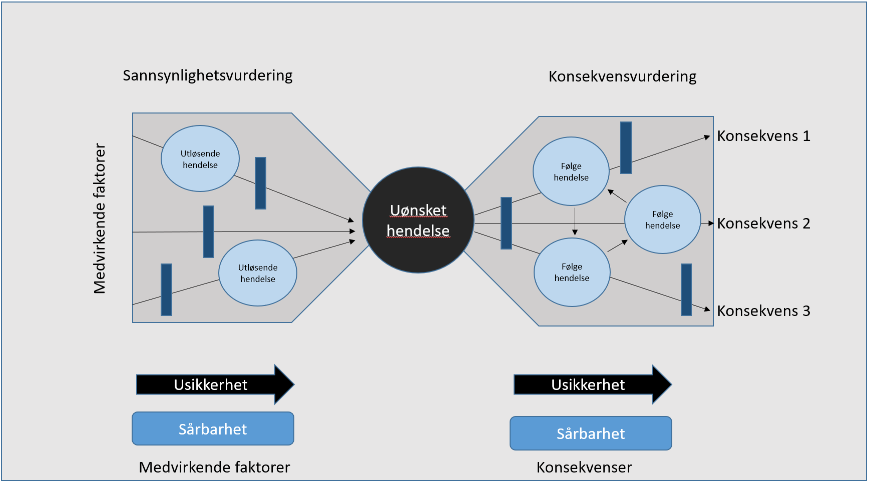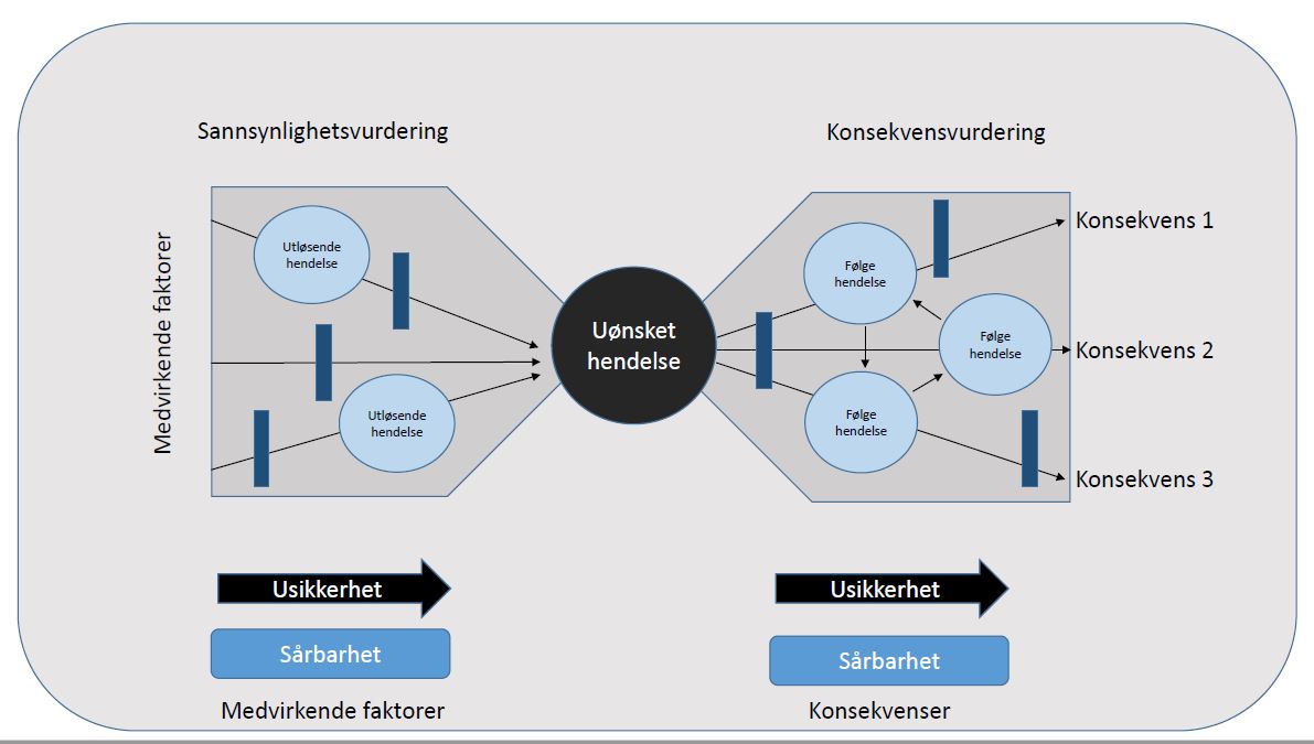 Sløyfemodell bygd på modellen i Direktoratet for samfunnssikkerhet og beredskaps (DSB) veileder til helhetlig risiko- og sårbarhetsanalyse.