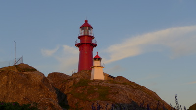 Fakta: Fyret i støypejern, bygd 1867 som kystfyr. Bifyr bygd i 1954. Lyshøgde 40 meter. Freda.