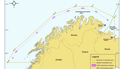 Trafikkseparasjonssystemene utenfor norskekysten fra Vardø til Røst er innenfor det operative området til Barents SRS.