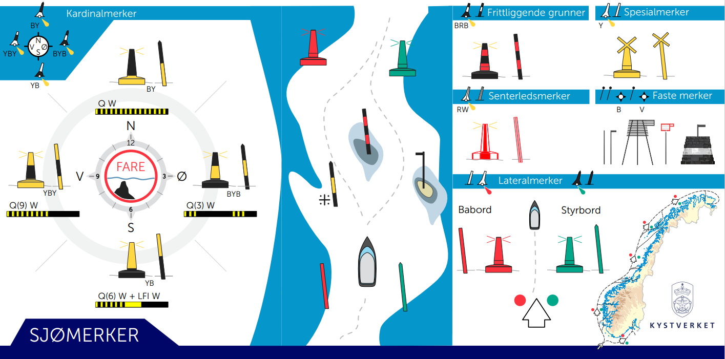 Langs hele norskekysten er det et omfattende system av lyssektorer som definerer hva som er sikker led – altså der det er trygt å ferdes. Normalt vil man seile i en hvit sektor på et fyr til man kommer inn i en ny hvit sektor på neste fyr, og dermed kan skifte kurs mot dette.