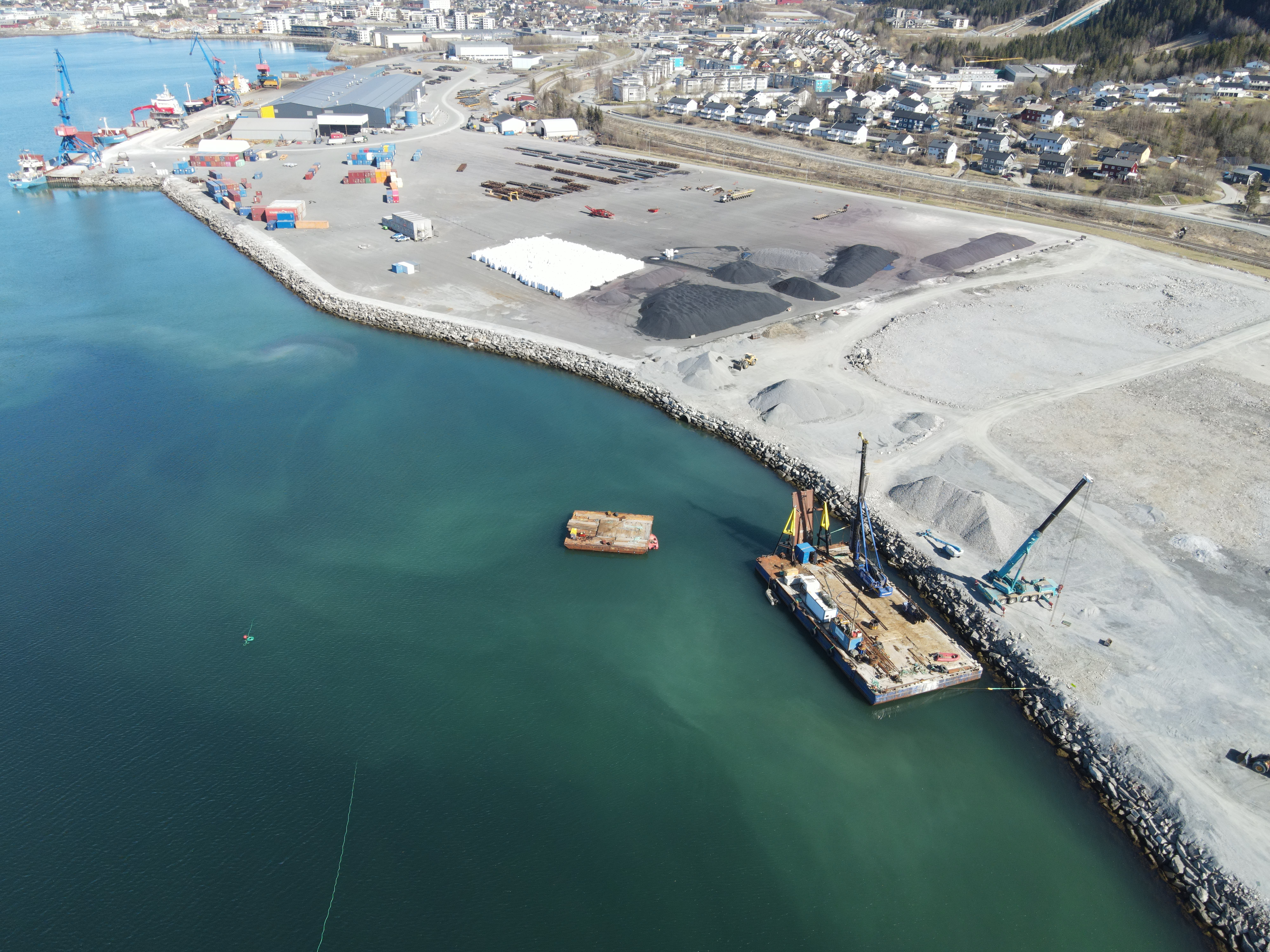Etablering av ny dypvannskai på Langneset. Bilde fra mai, 2024.