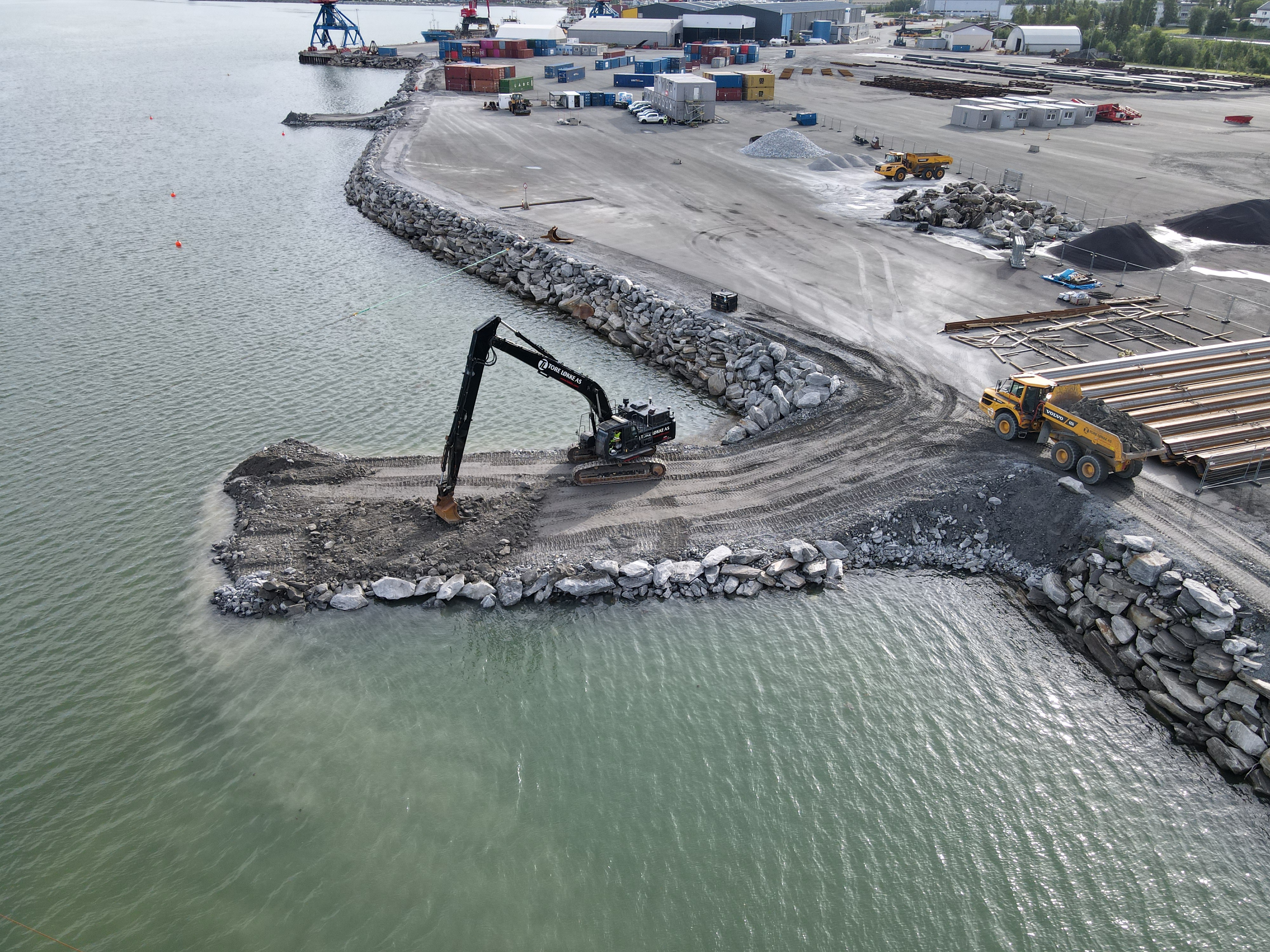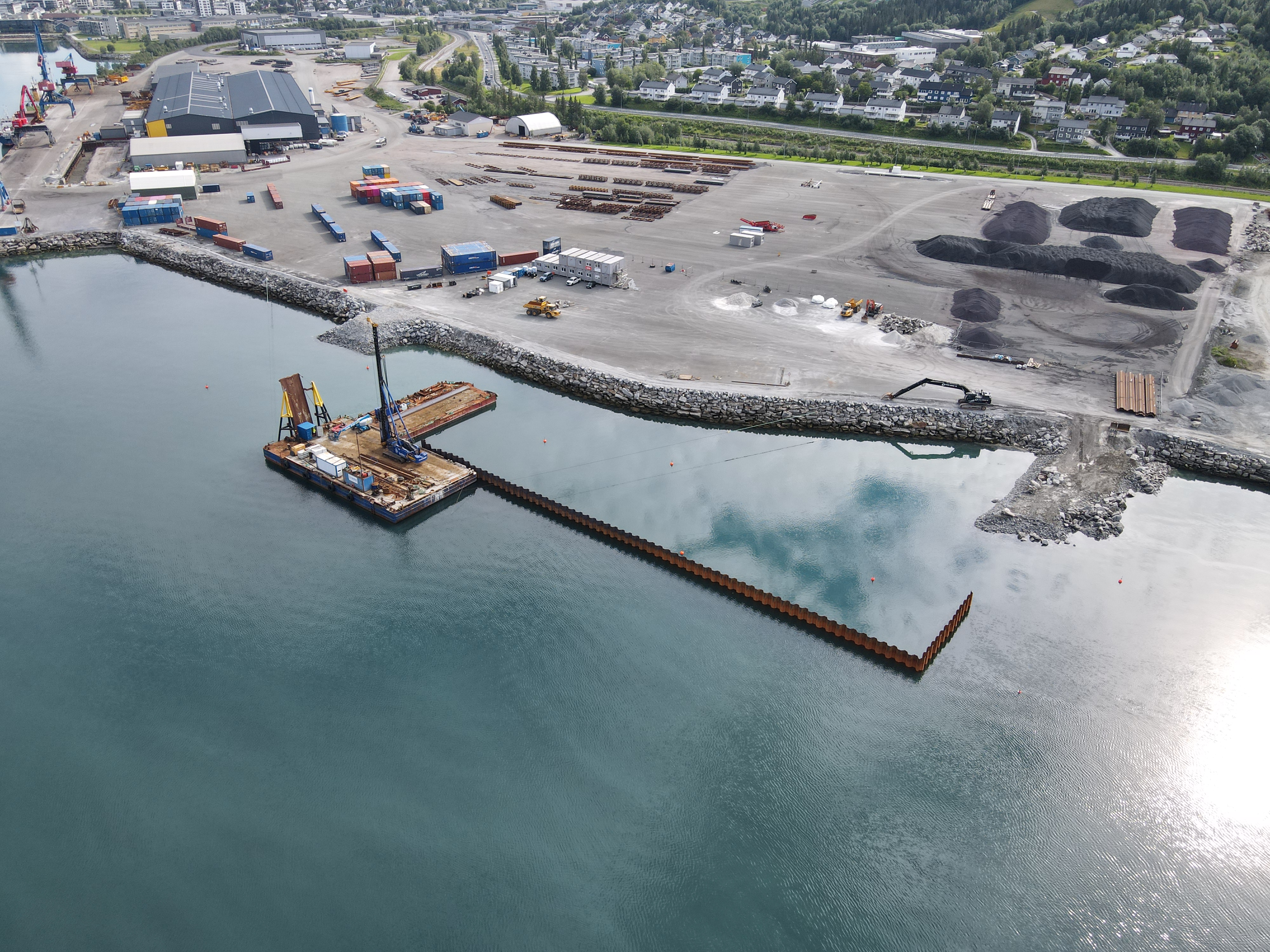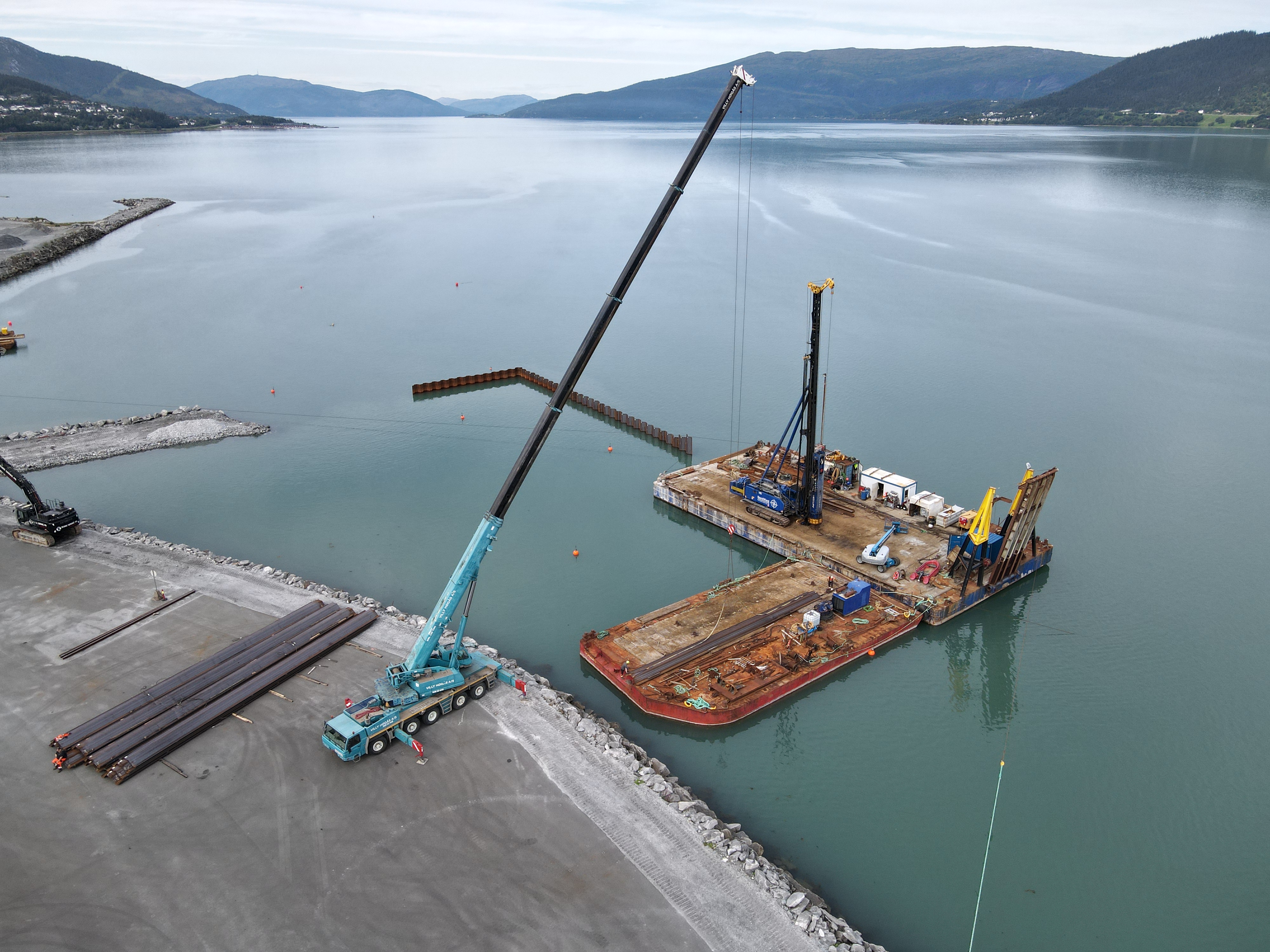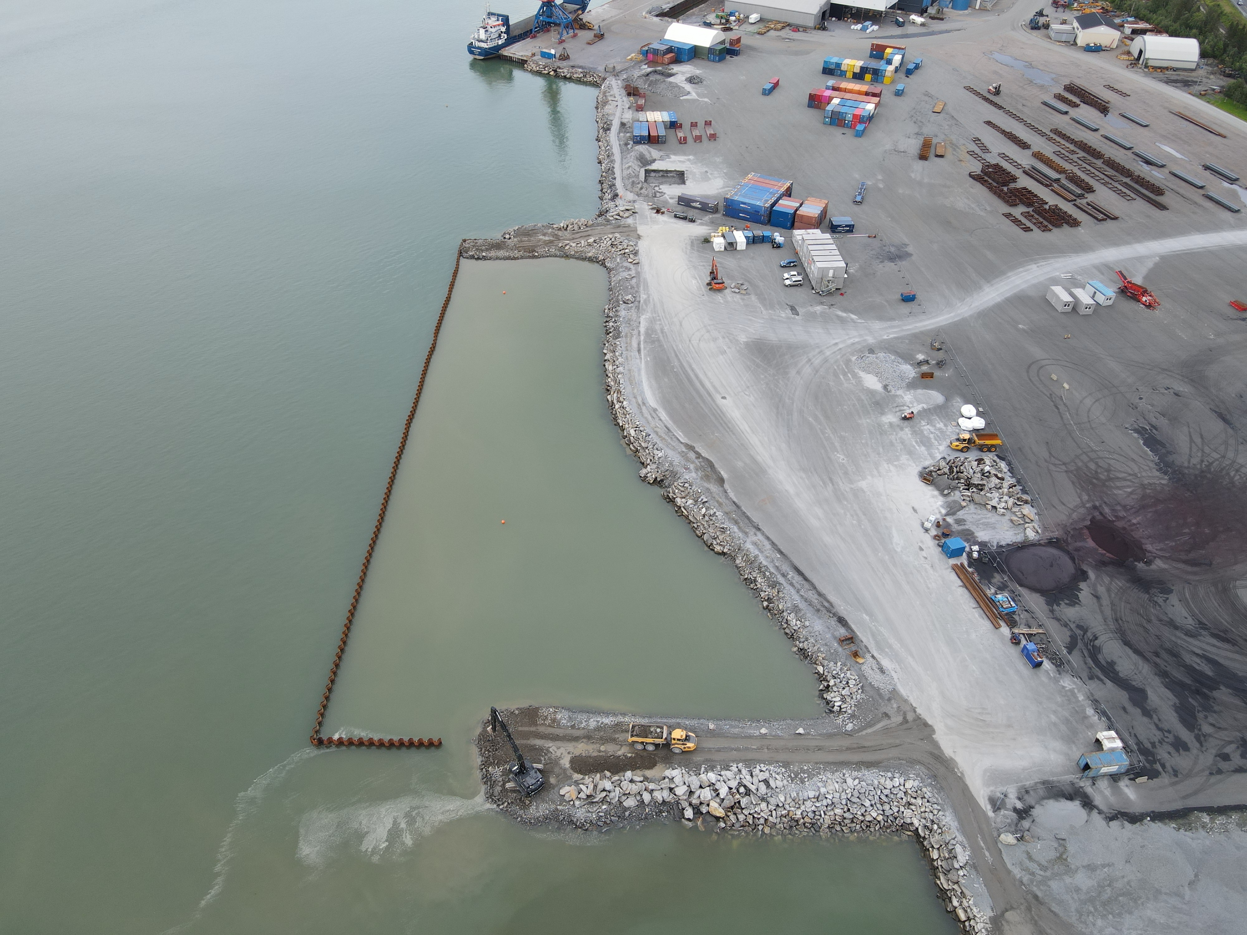 Etablering av ny dypvannskai på Langneset. Bilde fra juli, 2024.