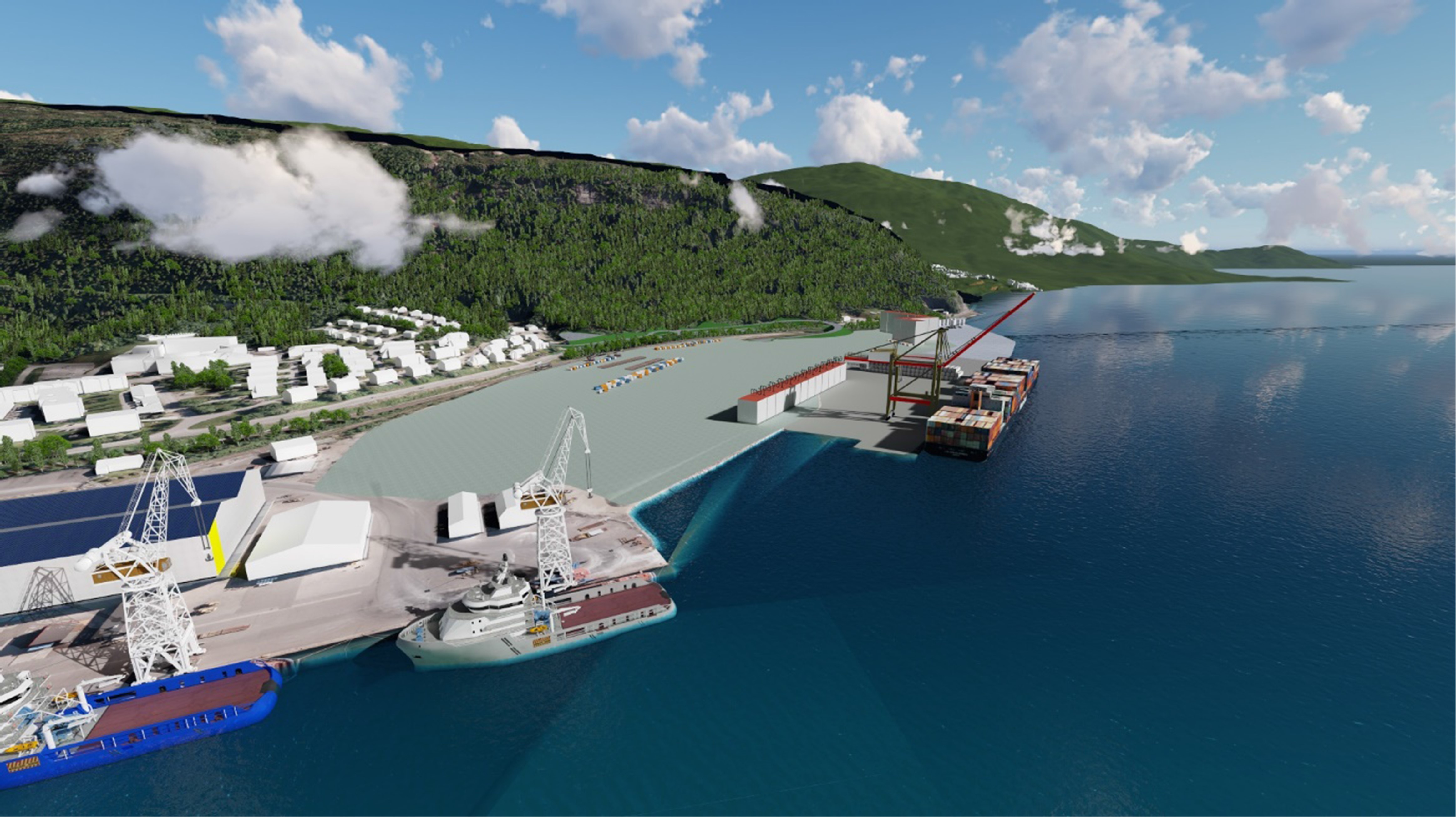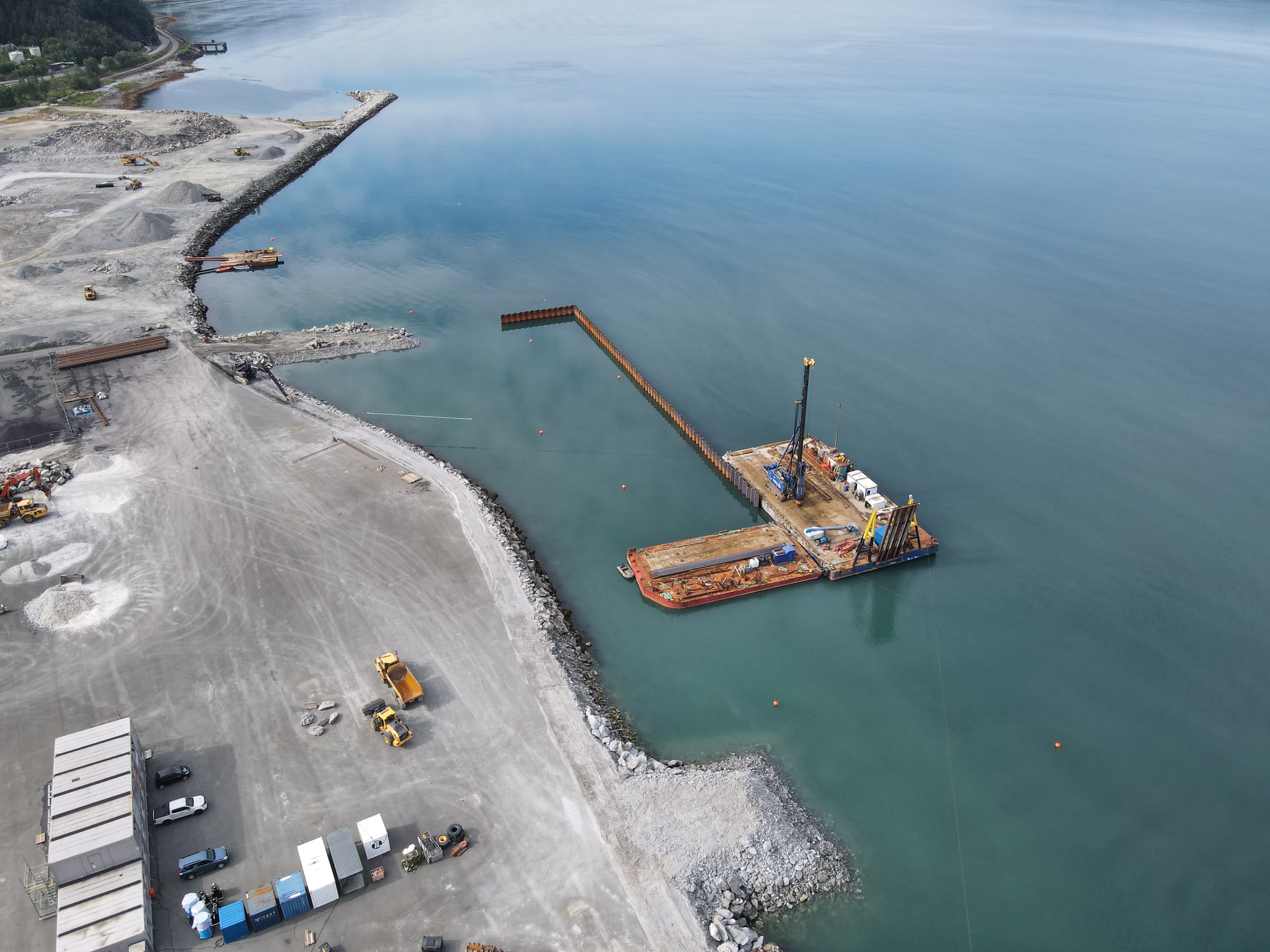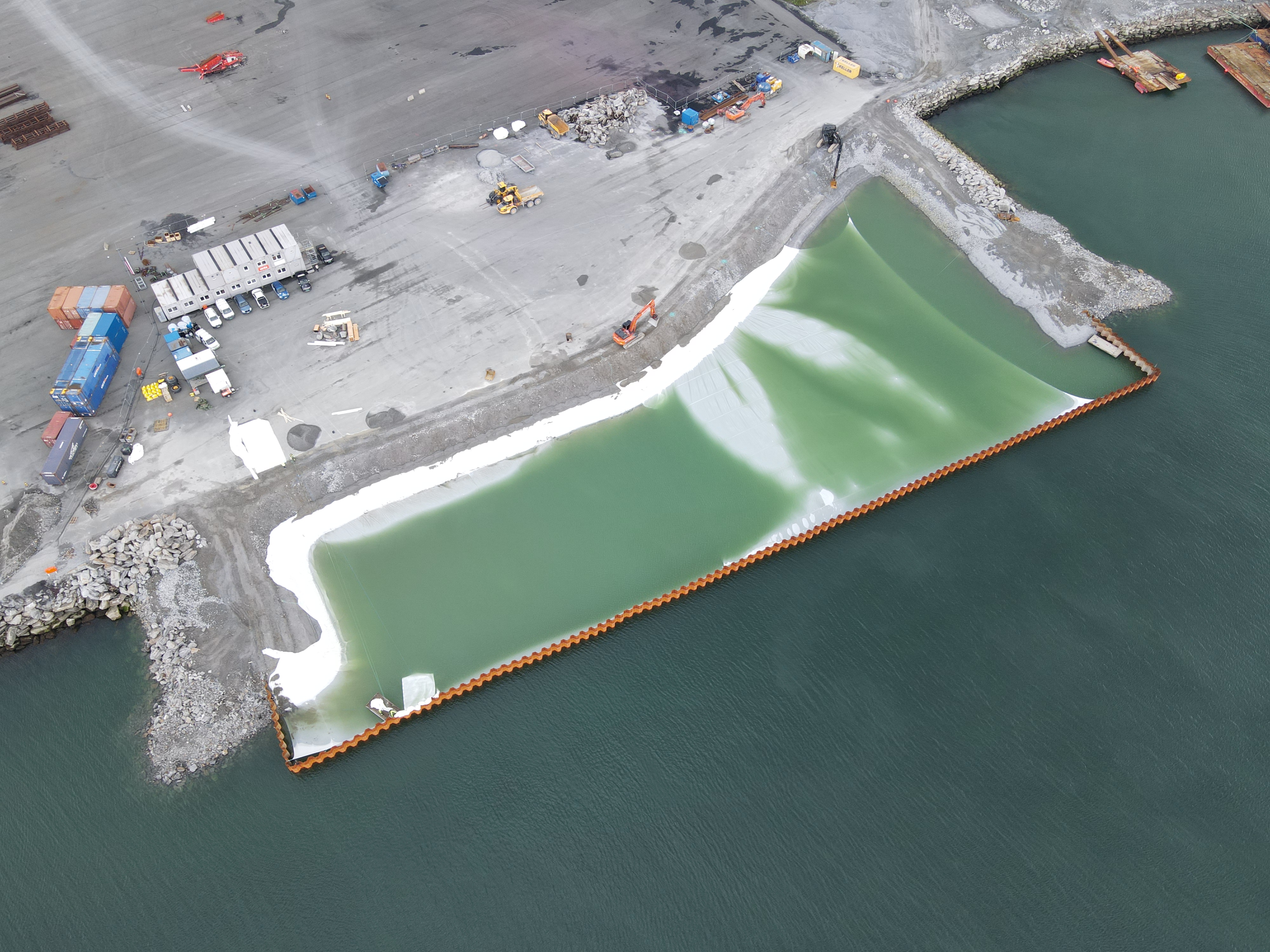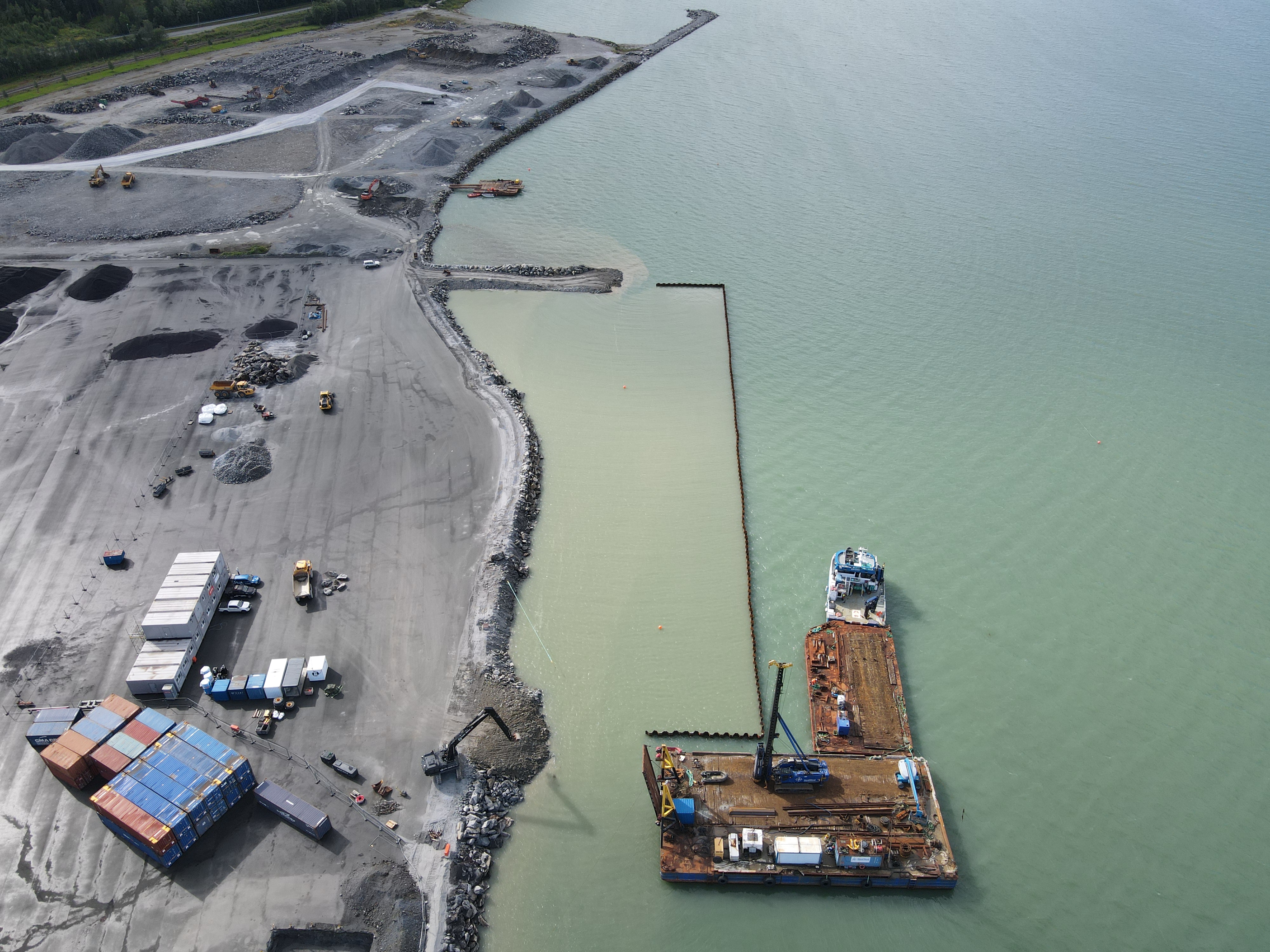 Etablering av ny dypvannskai på Langneset. Bilde fra juli, 2024.