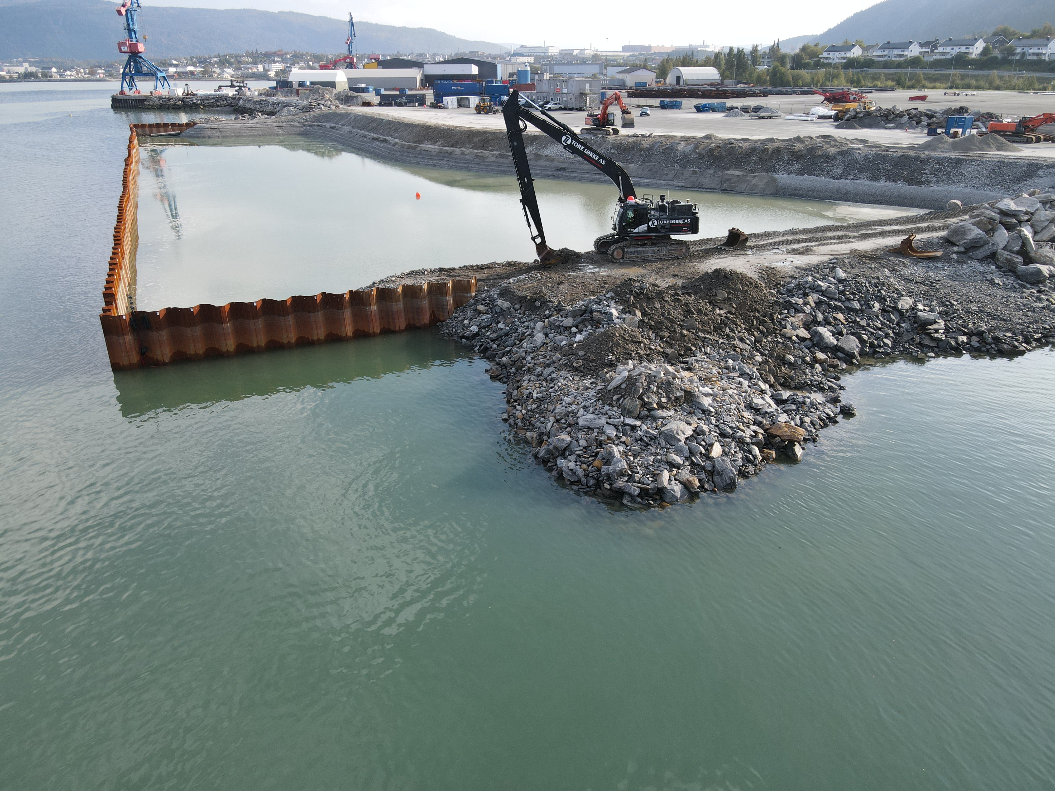 Etablering av ny dypvannskai på Langneset. Bilde fra september, 2024.
