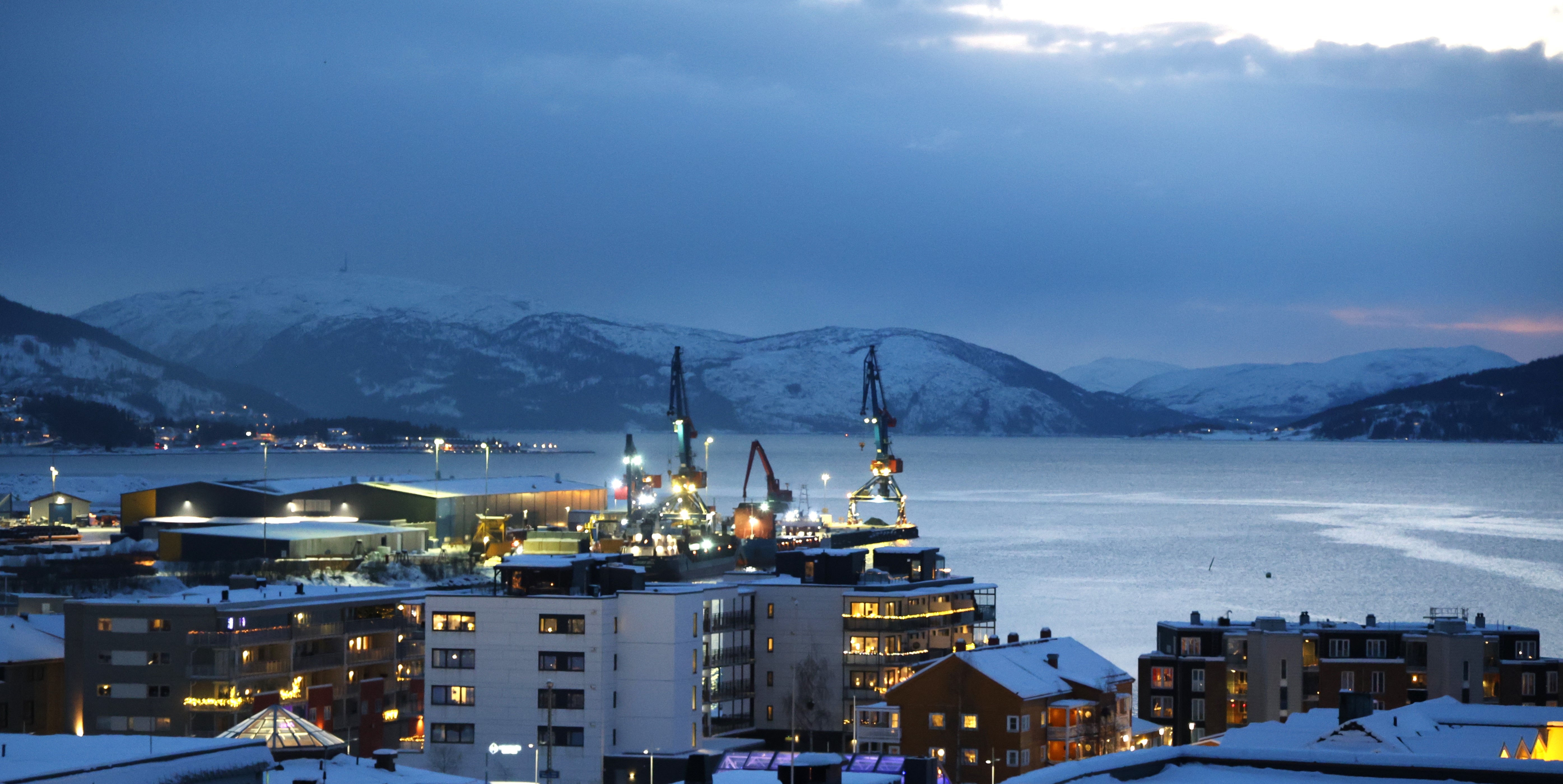 Industriterminalen fotografert fra sentrum, mot sør/sørvest.